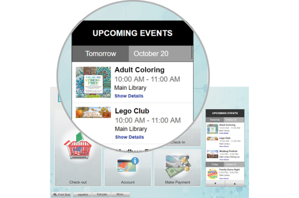 Not only can library users easily borrow, return, and renew items at our self-service stations, but they can discover events and programs, receive reading recommendations, and pay fines and fees. Users can also borrow items from their smartphones, receive interactive receipts, switch between multiple virtual library cards, and discover digital titles at the selfCheck and within the cloudLibrary app. This truly integrated approach delivers an experience today’s users come to expect.